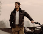 Reasons to Love It: For those who appreciate high-end fashion, this dark brown distressed bomber jacket is a perfect choice. Its premium leather construction and designer detailing make it a standout piece. The distressed finish adds a rugged charm, making it a versatile option for both casual and dressier occasions.